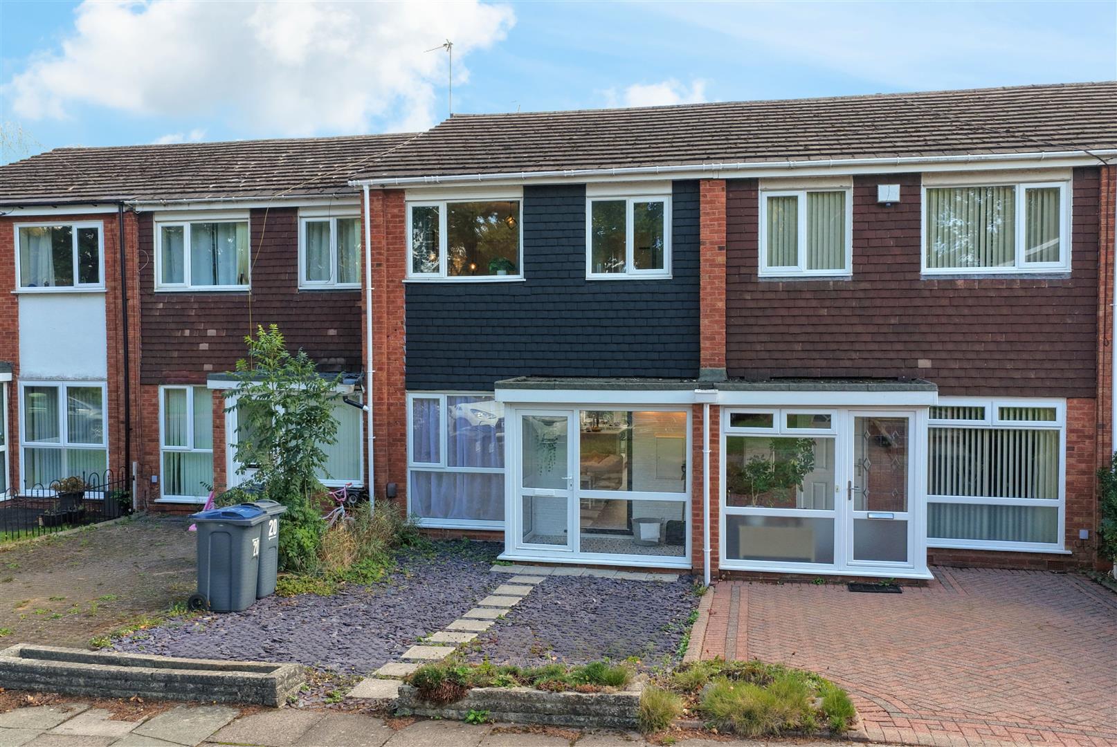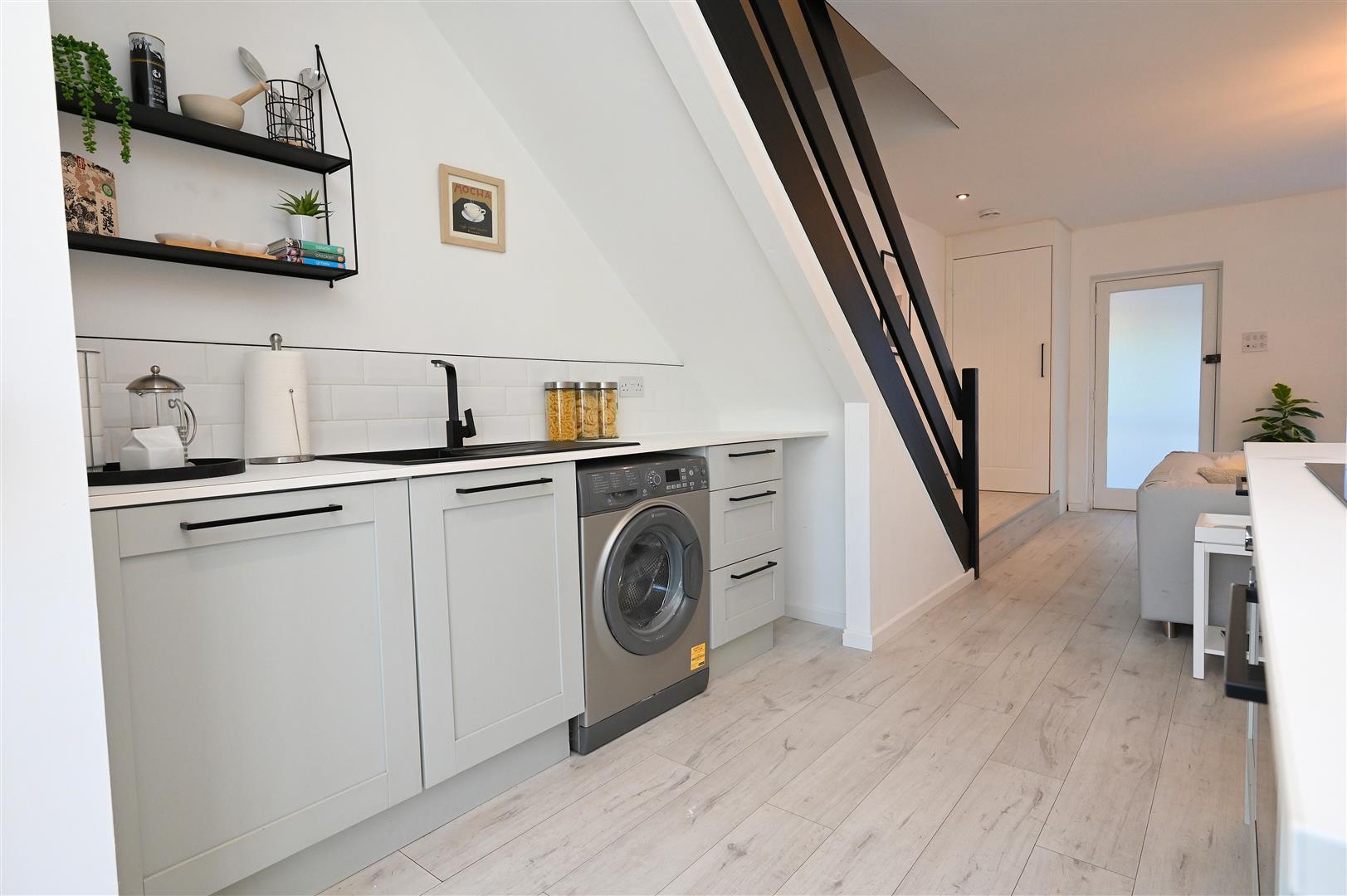 A beautifully refurbished and presented modern townhouse in an excellent cul-de-sac location. Double glazing and replacement central heating as specified, enclosed porch, splendid through open plan living/dining/fitted kitchen area, ground floor WC, three bedrooms, bathroom/WC, low maintenance rear garden with decking and garage in nearby block. The close has some communal parking facilities. It is set back behind a mainly slate chip fore garden with inset paving steps.