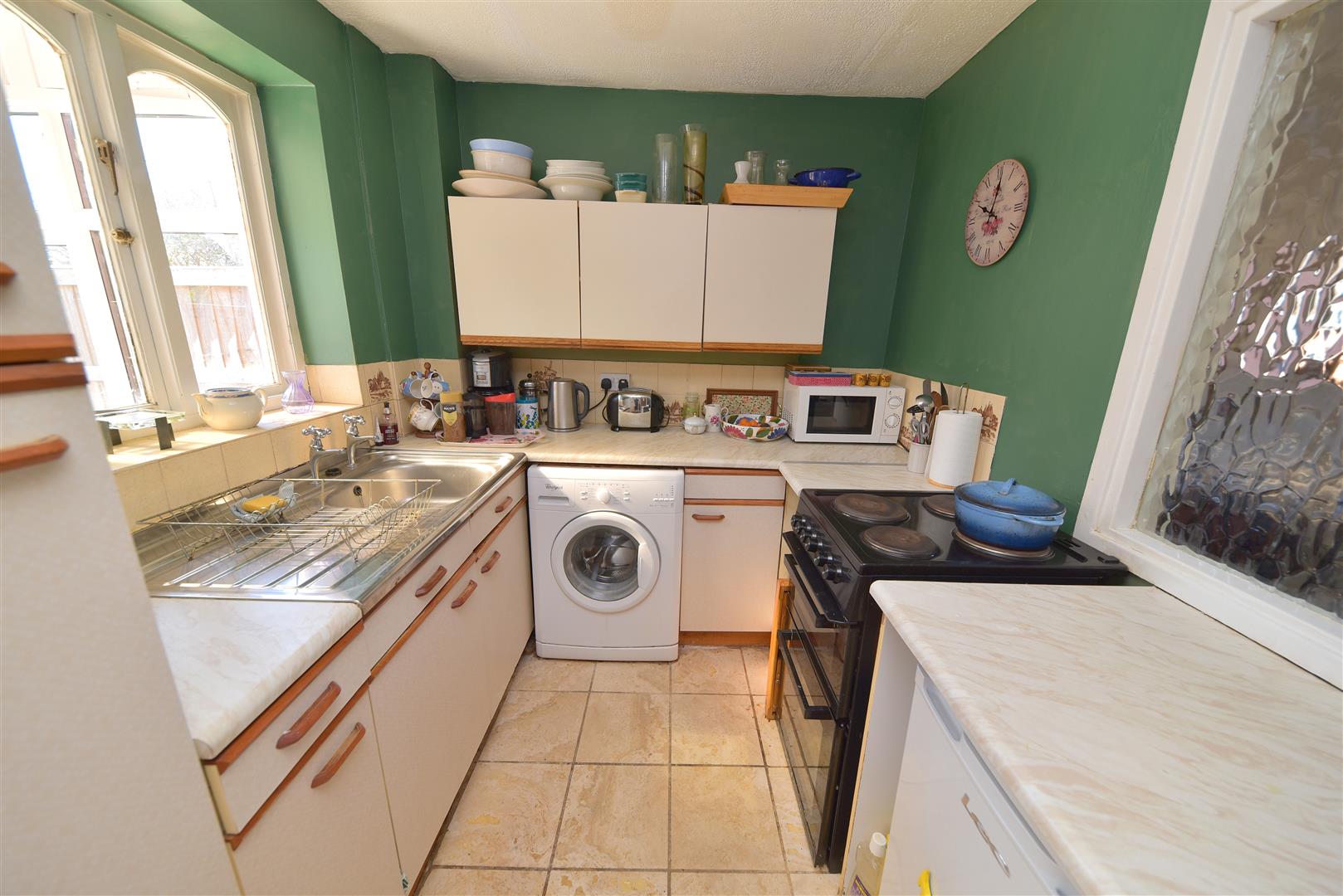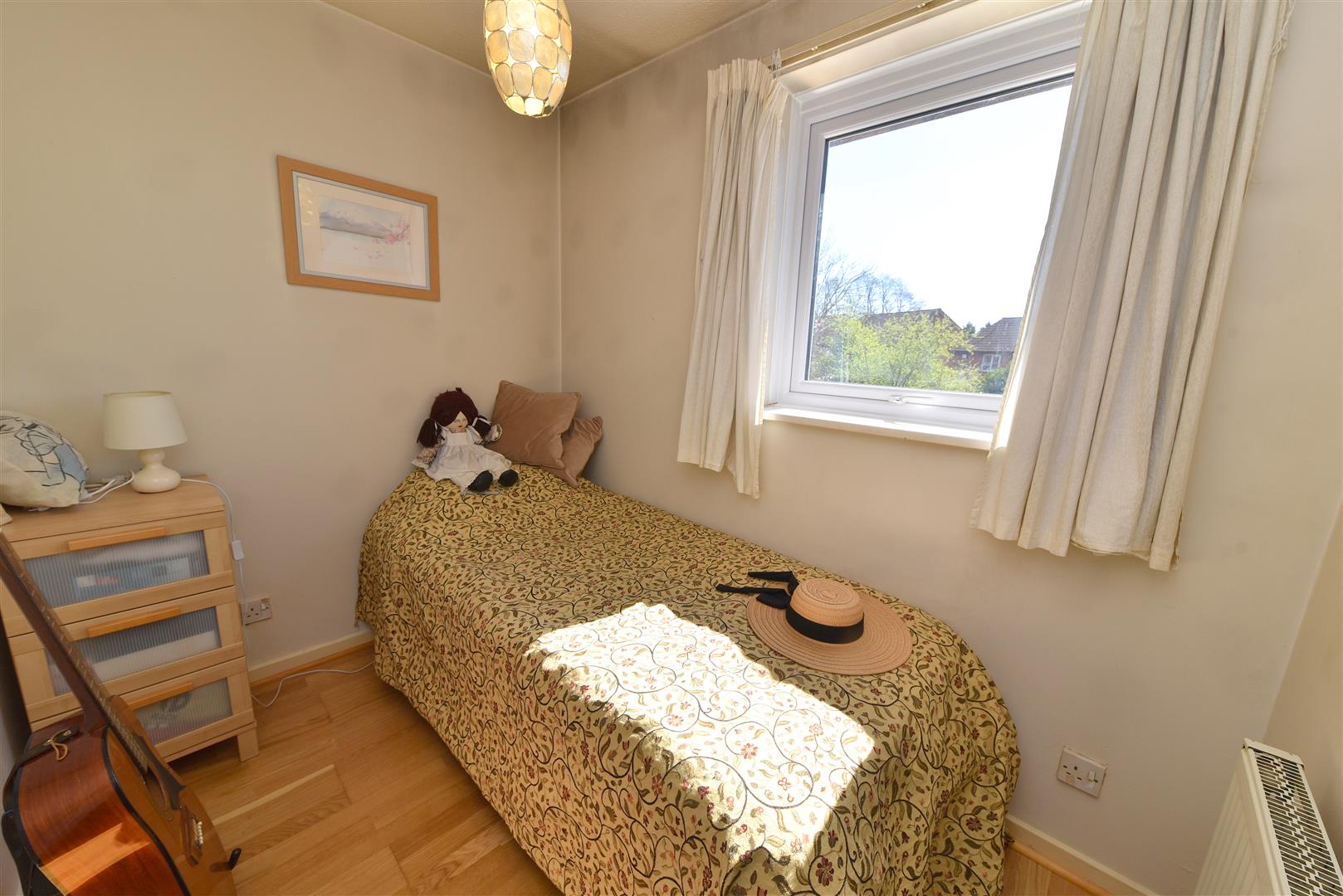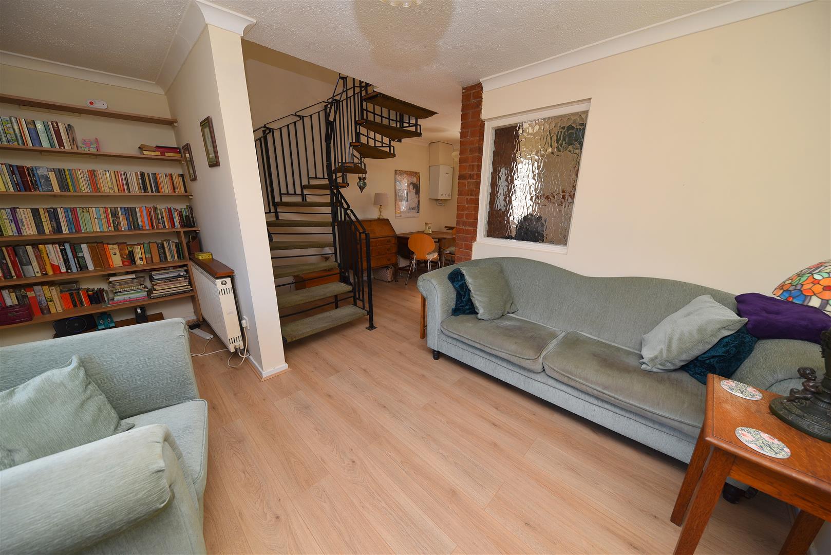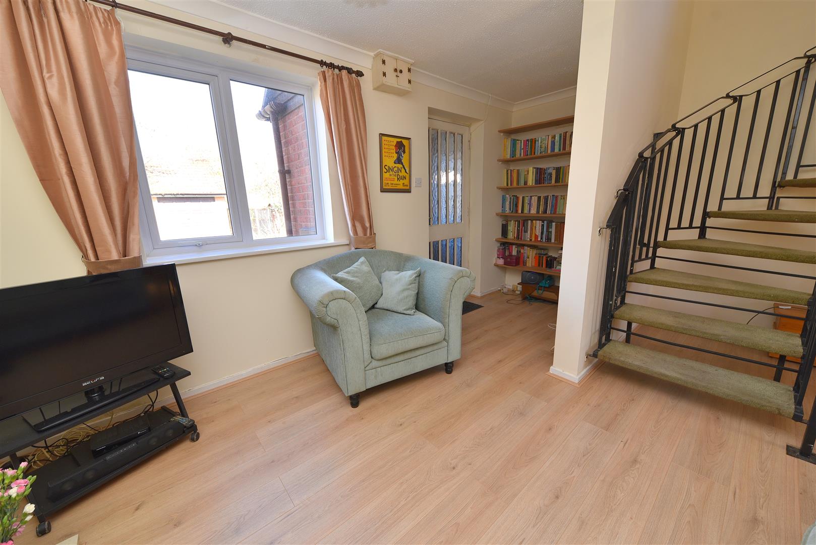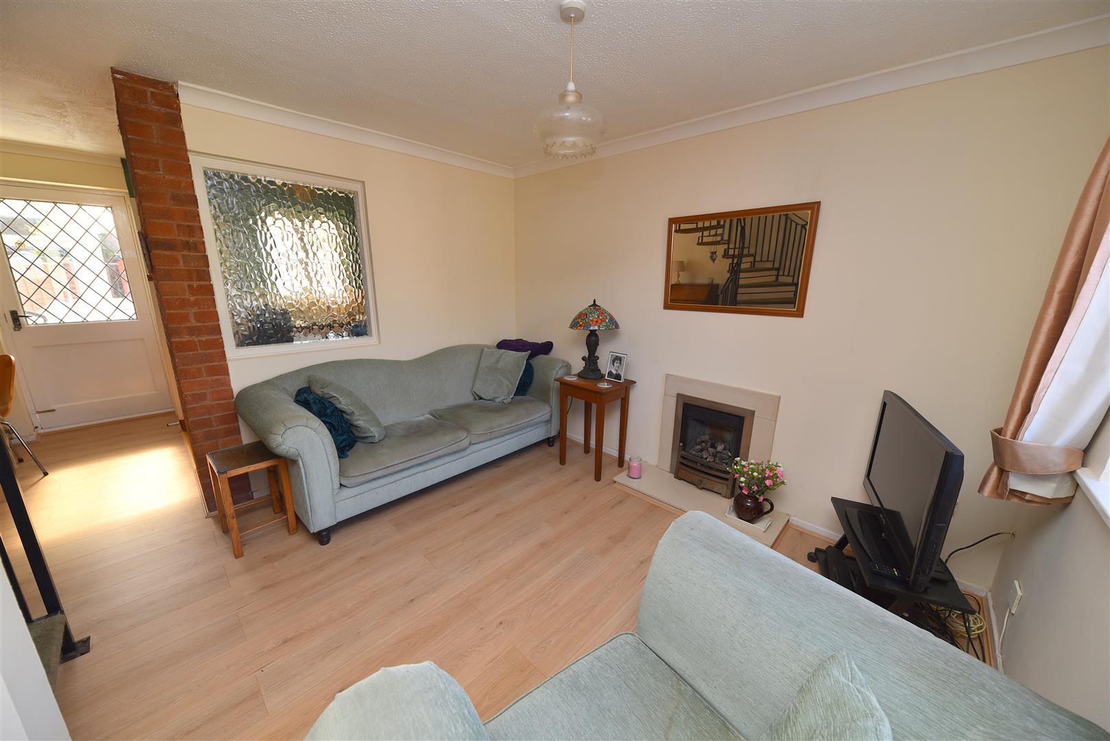 The property is set back from the road behind a small grass verge and pathway. It also benefits from an allocated off road parking space and gate access to rear garden.