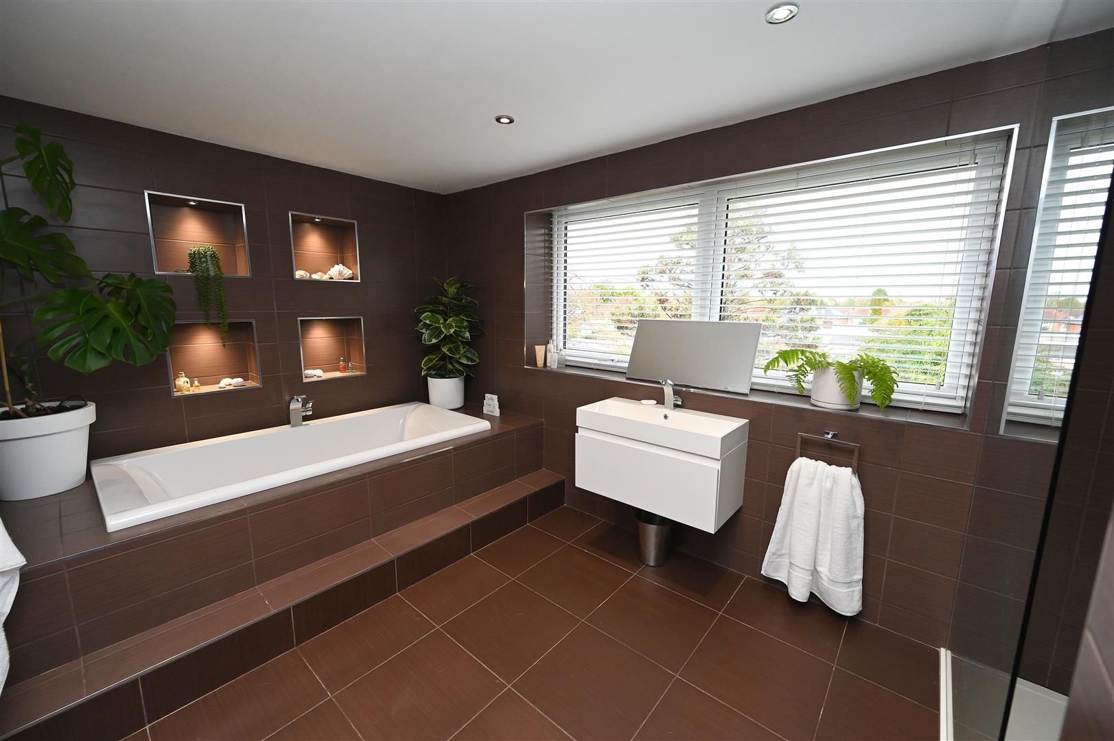 Briefly comprising excellent lounge/dining room, snug/home office, fitted kitchen, ground floor cloaks, four double bedrooms. Principal bedroom with impressive en suite, bedroom two with balcony and bedroom three also with balcony, bedroom four currently being used as a dressing room and family bathroom. Landscaped rear garden ideal for entertaining with extensive patio, seating area and firepit. Garage, driveway and front lawned garden.