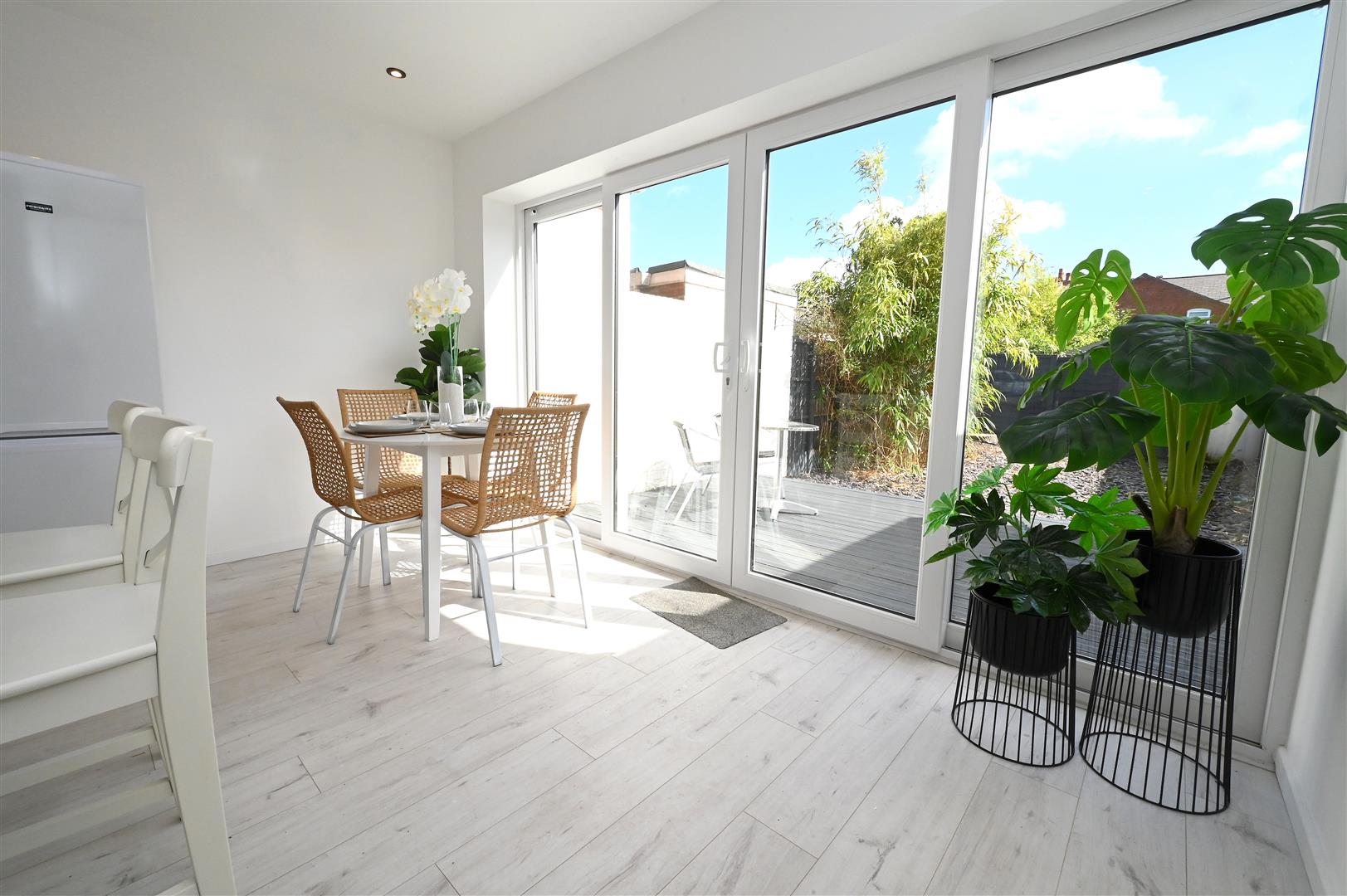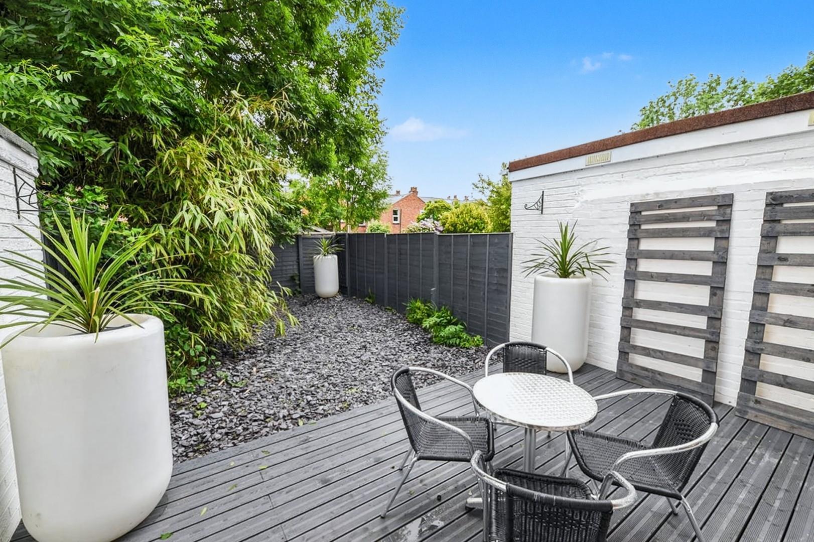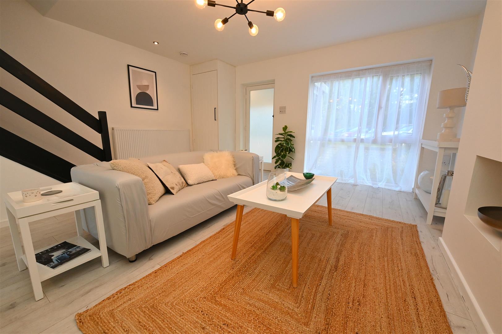 A beautifully refurbished and presented modern townhouse in an excellent cul-de-sac location. Double glazing and replacement central heating as specified, enclosed porch, splendid through open plan living/dining/fitted kitchen area, ground floor WC, three bedrooms, bathroom/WC, low maintenance rear garden with decking and garage in nearby block. The close has some communal parking facilities. It is set back behind a mainly slate chip fore garden with inset paving steps.